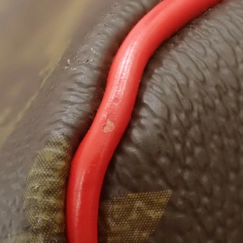 詳細 : 角やフチに小さな剥がれがございますが、使用時に目立つものではございません(写真6枚目、参照)。赤いレザー部分に薄いスレあり。