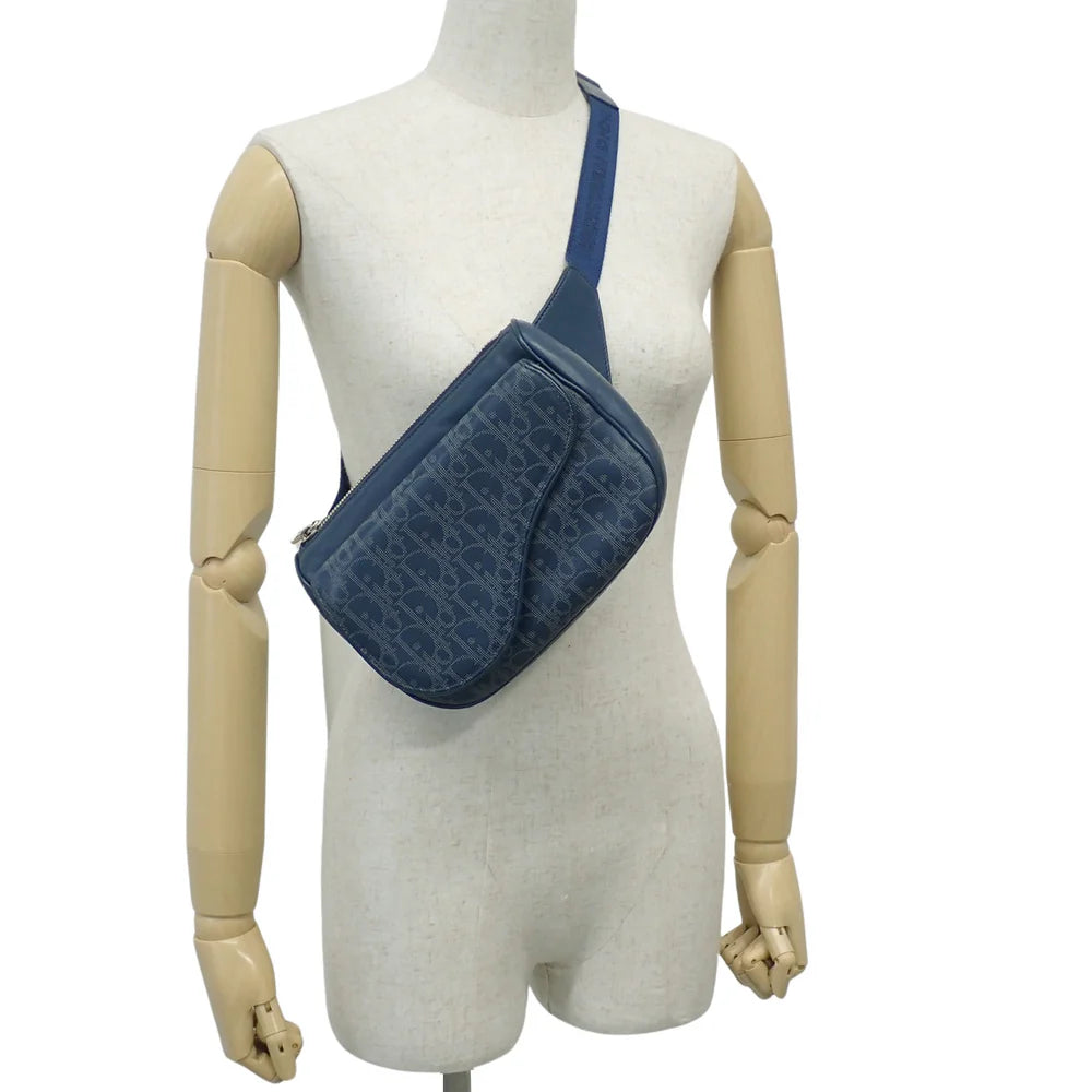 ワールドツアー オブリーク サドルベルトバッグ レザー ブルー ネイビー