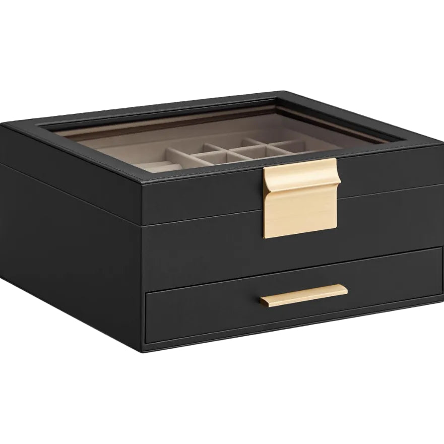 • [透明ガラス蓋] このジュエリーオーガナイザーのシースルーガラス蓋により、お気に入りの宝石を一目で見つけることができ、ほこりから保護し、ジュエリーをすぐに着用して清潔に保ちます。