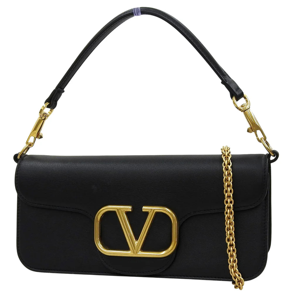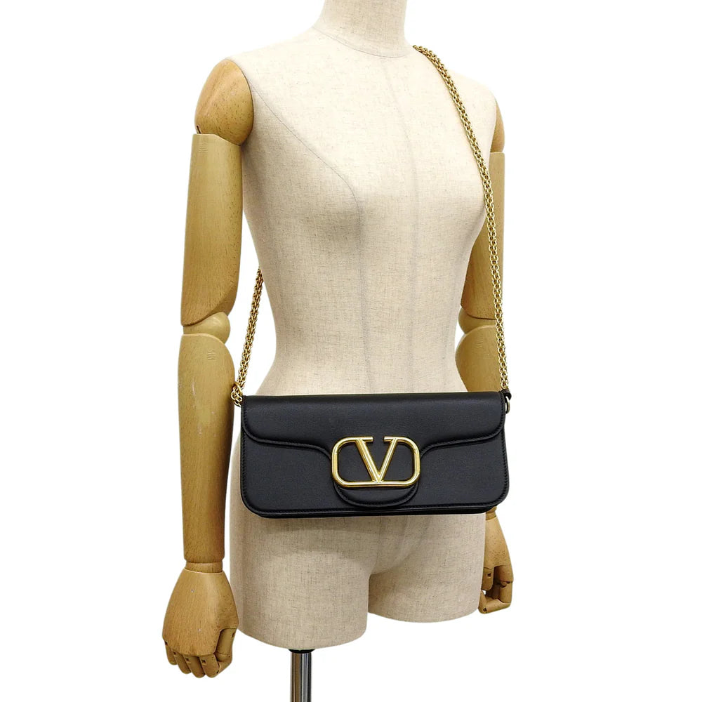 Vロゴ ショルダーバッグ レザー ブラック